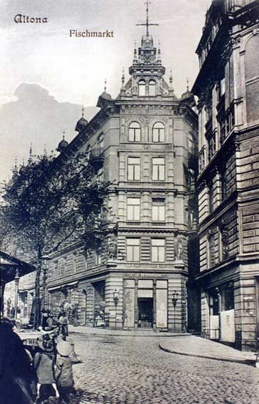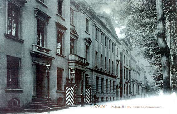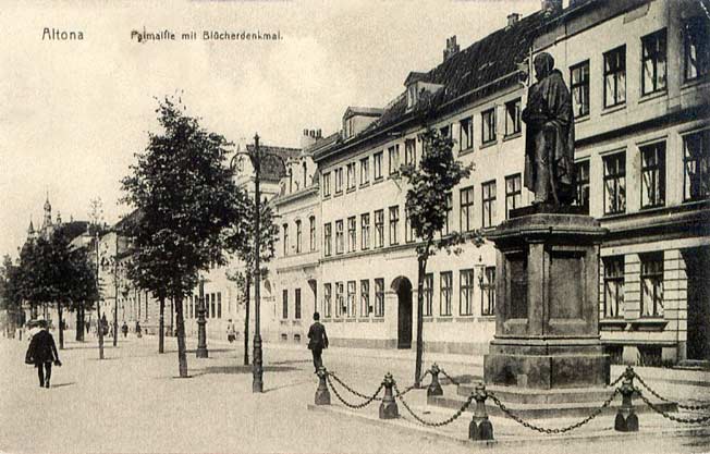 Auch das "braune Haus", Nummer 57 - in der Palmaille blieb unversehrt und es besteht noch bis heute. Merkwürdiger Weise wohnten dort einmal der Rabbiner mit seiner Frau und ihren neun jüdischen Kindern. Es war einmal... bis gegen die Familie ein Prozess angestrengt wurde, den sie natürlich verloren, woraufhin sie dem Rechtsspruch gemäss ihre Wohnung verlassen mussten. Wieviel Altona hatten wir von dort aus erlebt! Das Blücherdenkmal, die Elbe und die Nähe zum Rathaus; die freundlichen und die gehässigen Nachbarn und die Ereignisse in der Strasse, der Palmaille. In dieser breiten, schattigen Allee mussten "Tippel-Tappel" und andere harmlose Kinderspiele vor unseren Augen auf abhärtende Paraden uniformierter kleiner Knaben um- und gleichgeschaltet werden. Die