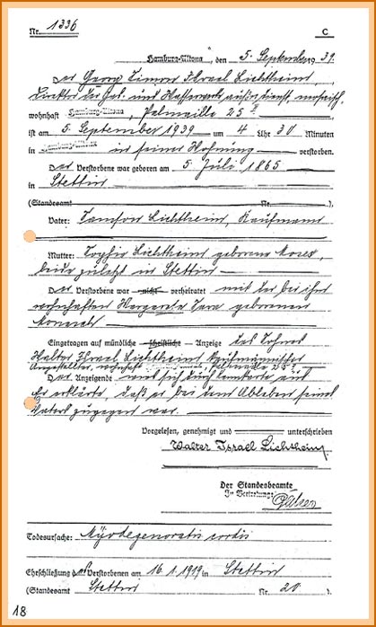 Sterbeurkunde (Hamburg, 5.9.1939)