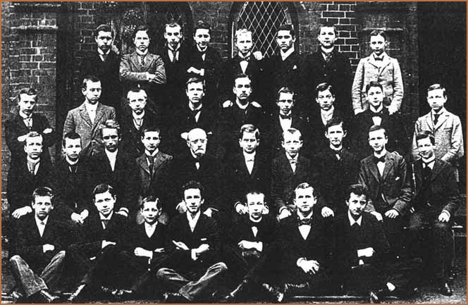 Etwa 1891 (das früheste Bild in unserm Besitz), der Strolch Joseph (hintere Reihe, 3. von links)